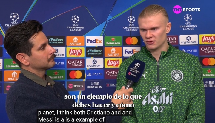 哈兰德:当然,我认为对地球上每个足球运动员而言,克里斯蒂亚诺和梅西都是榜样,他们示范了该如何做,才能在在顶级联赛中保持顶级水平长达15年。所以他们都极具启发性。